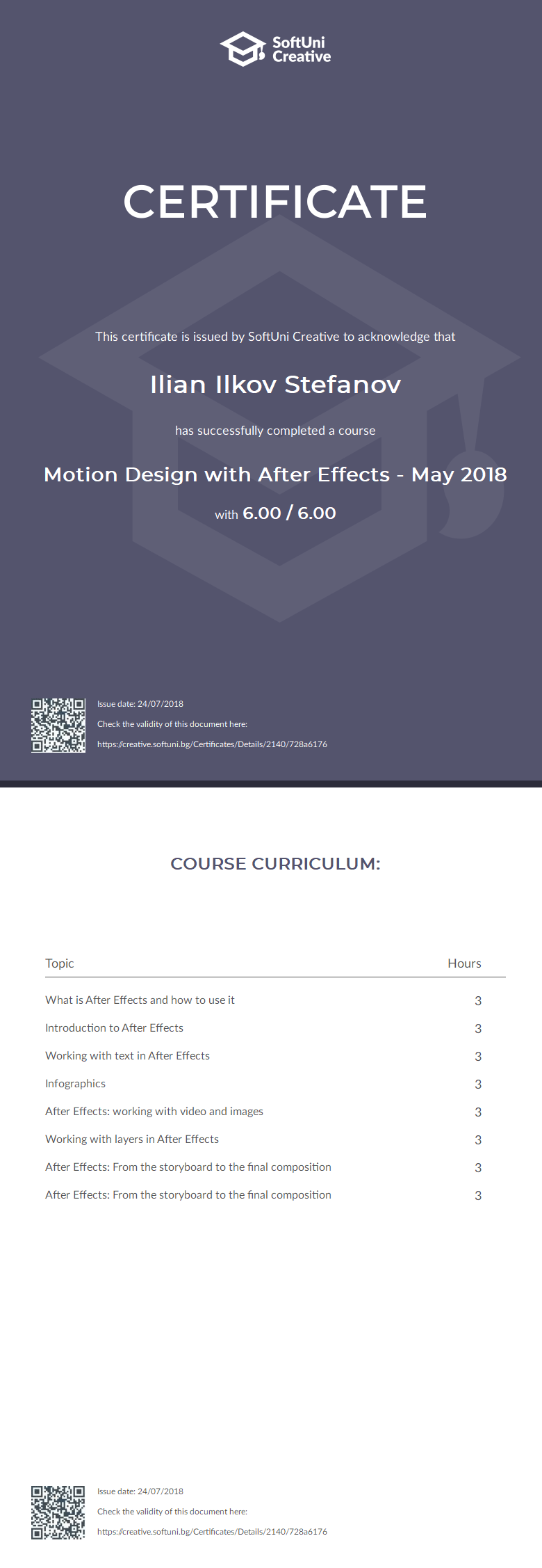 This certificate is issued by SoftUni Creative to acknowledge that