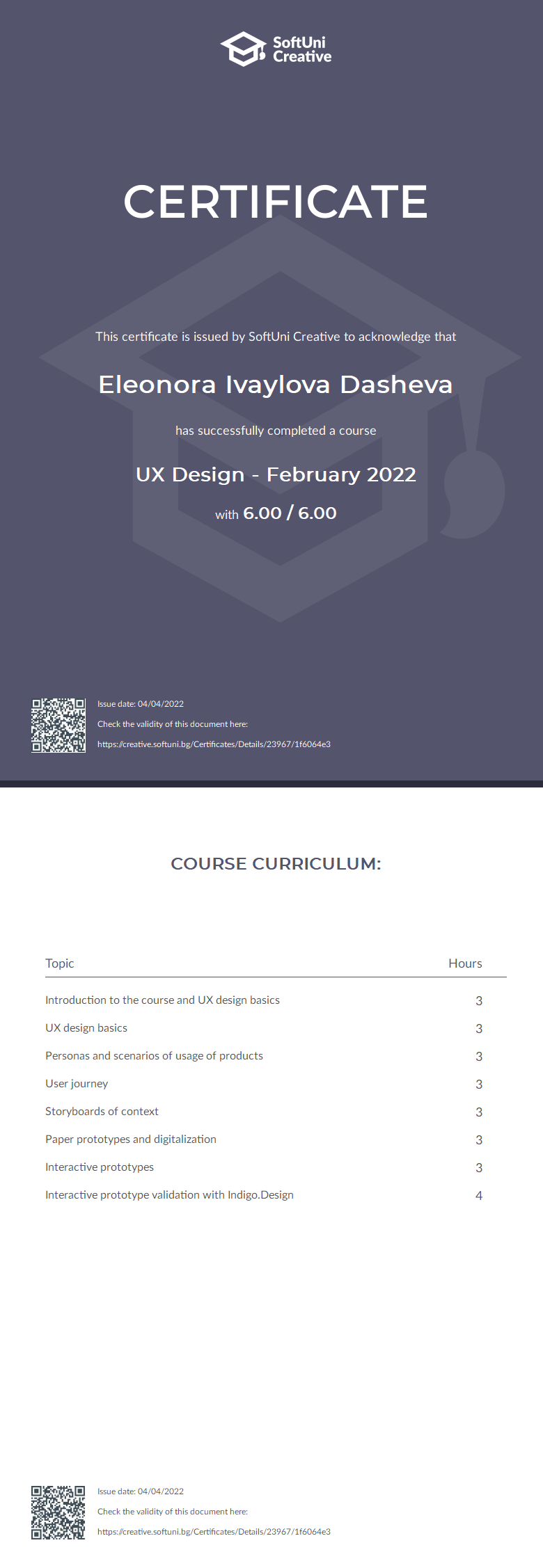 This certificate is issued by SoftUni Creative to acknowledge that