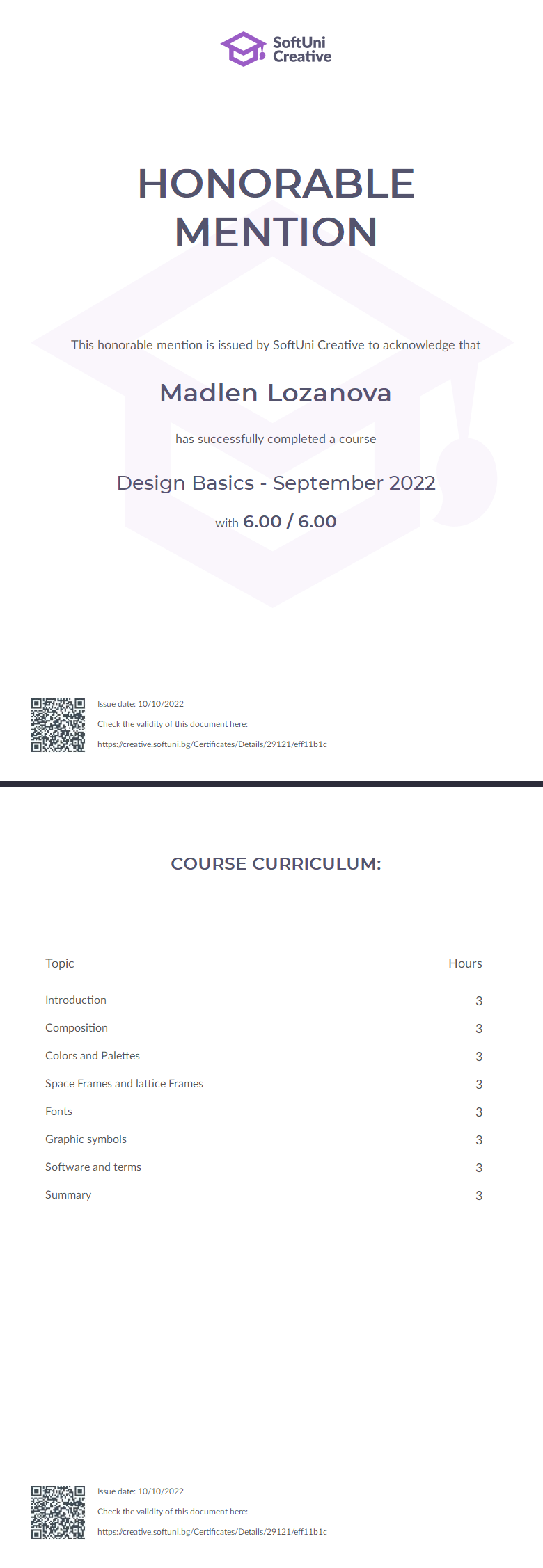 Грамота - Design Basics - September 2022 - SoftUni Creative