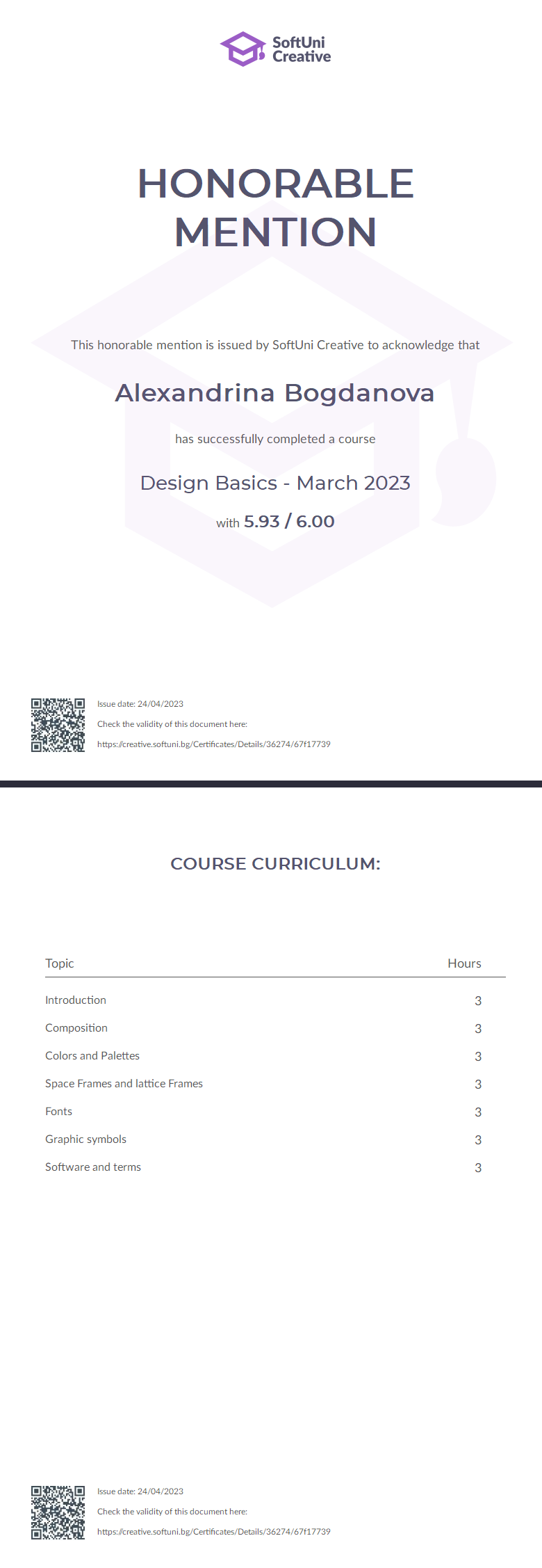 Грамота - Design Basics - March 2023 - SoftUni Creative