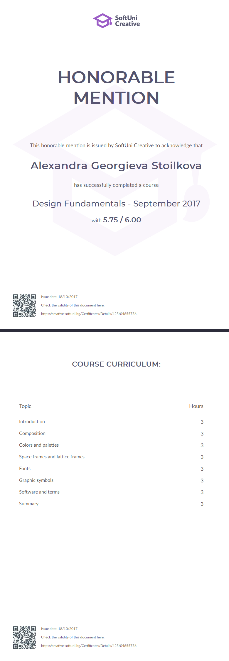 Грамота - Design Fundamentals - September 2017 - SoftUni Creative