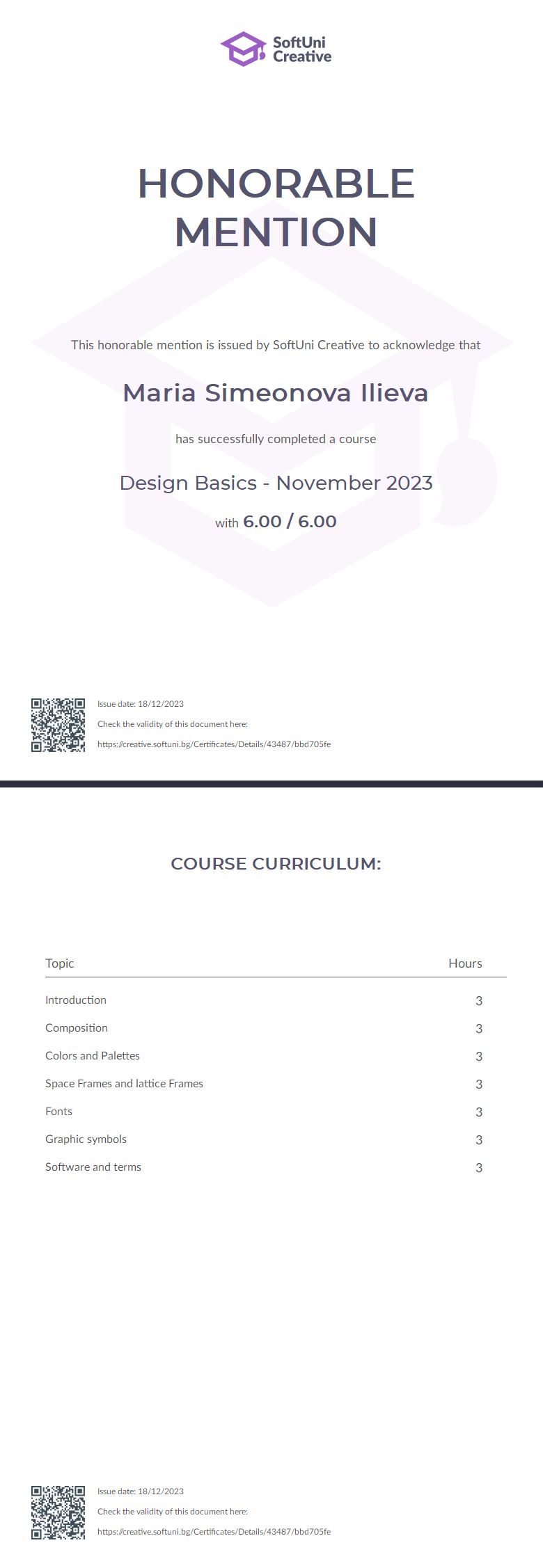 Грамота - Design Basics - November 2023 - SoftUni Creative